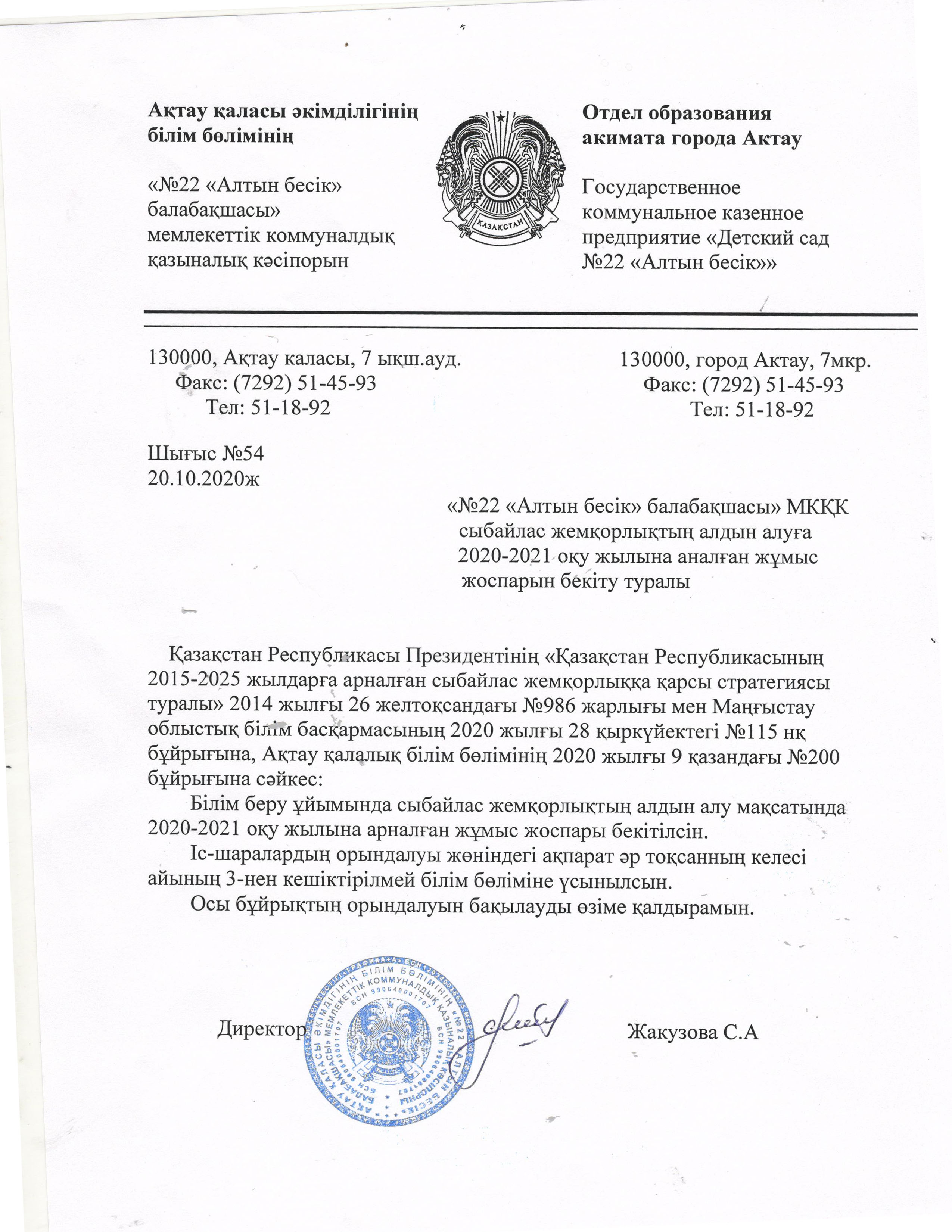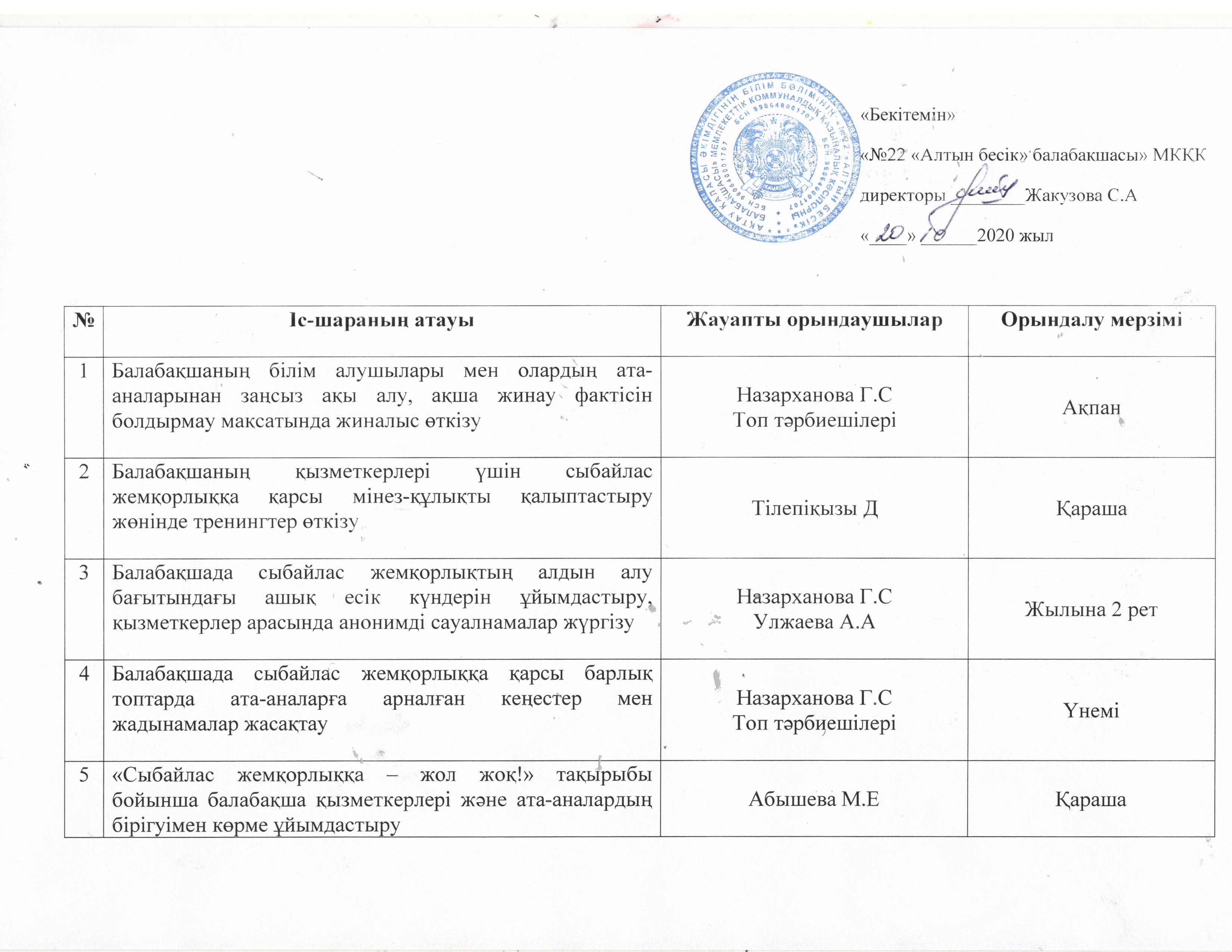 План мероприятий по предупреждению коррупции на 2020-2021 учебный год