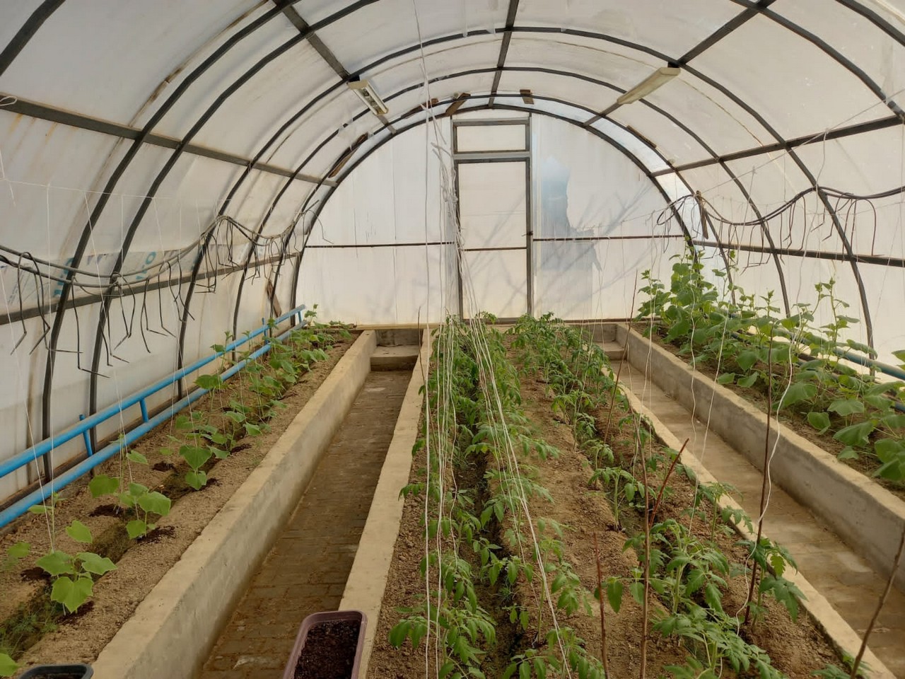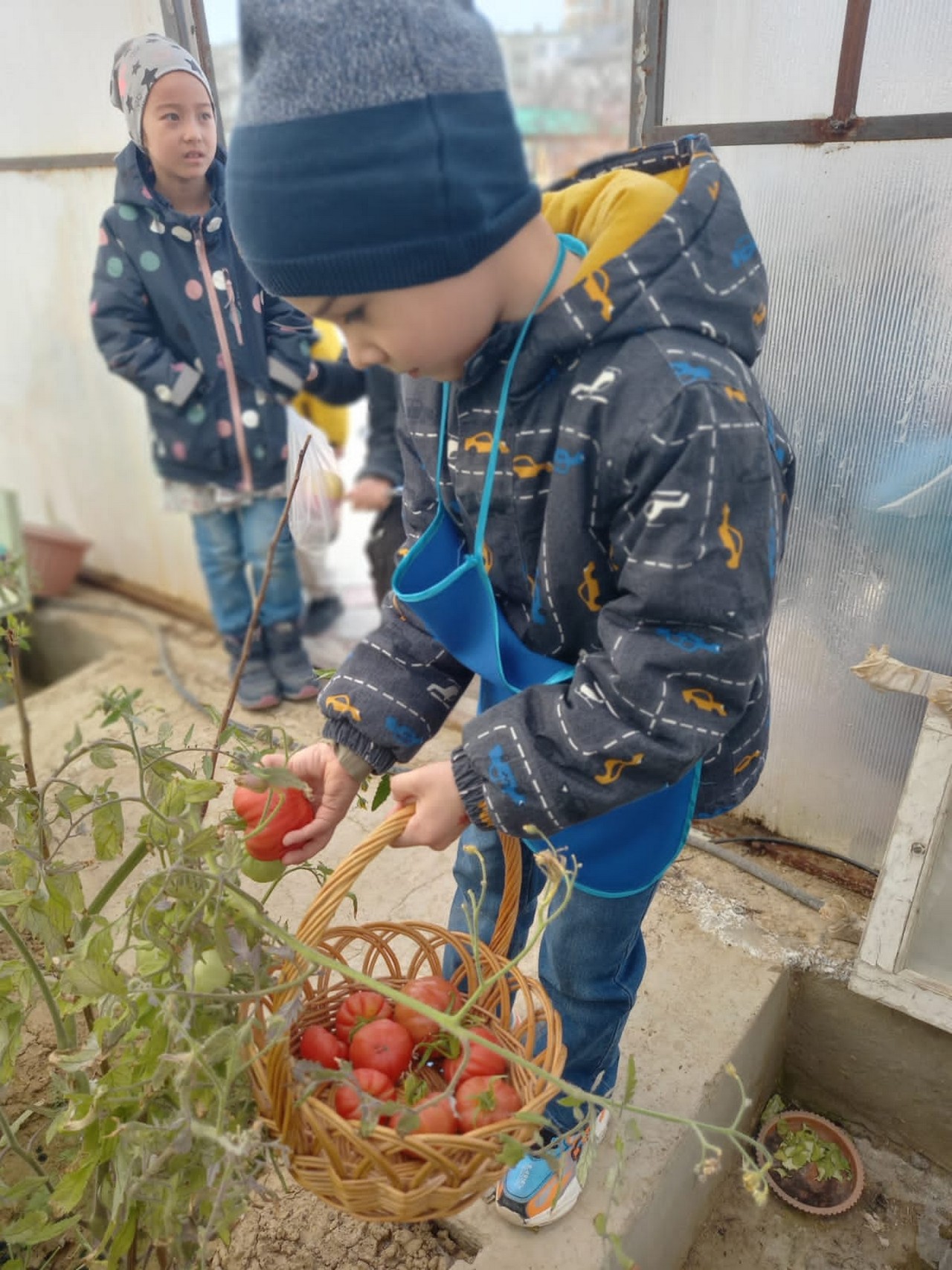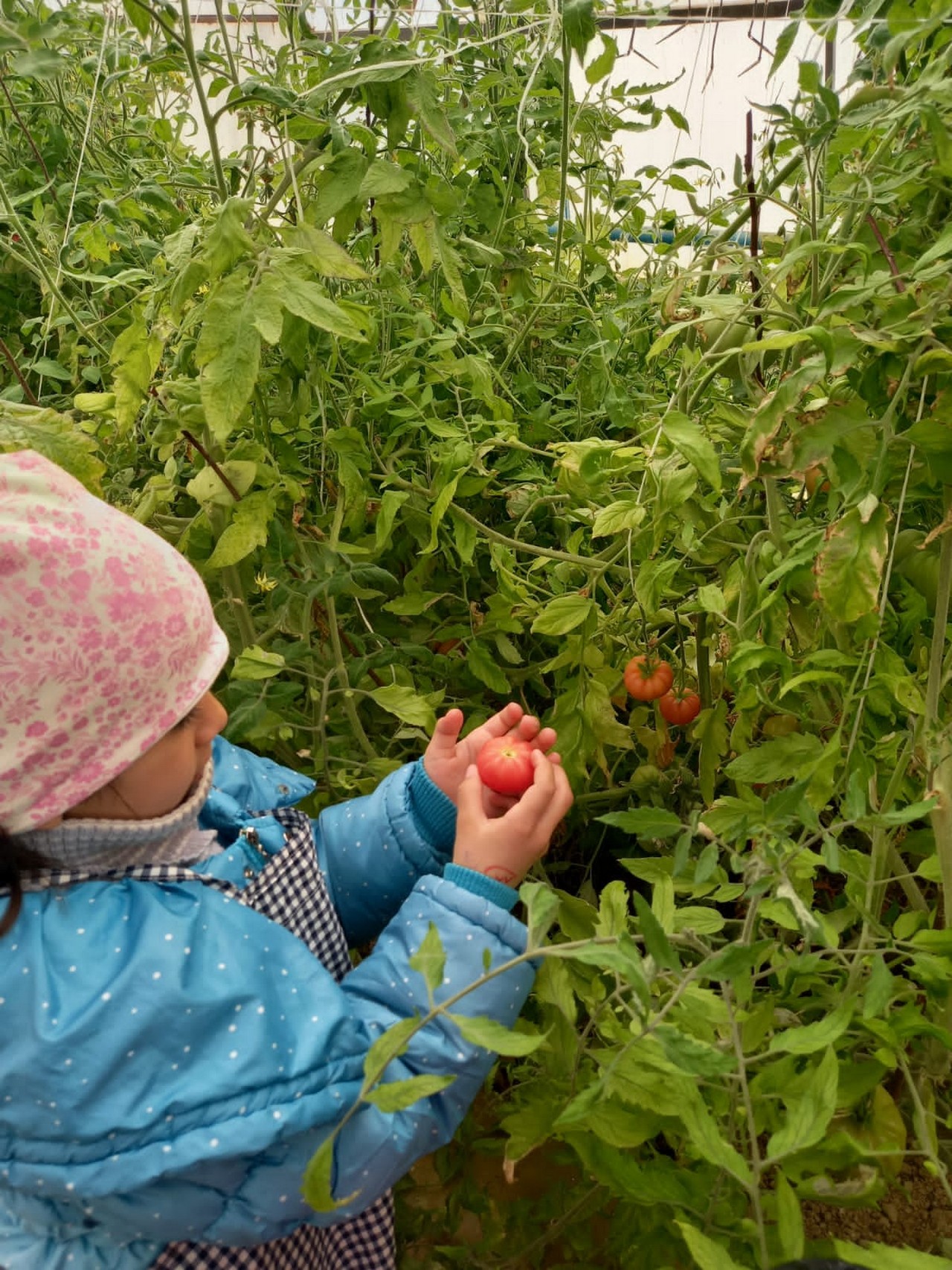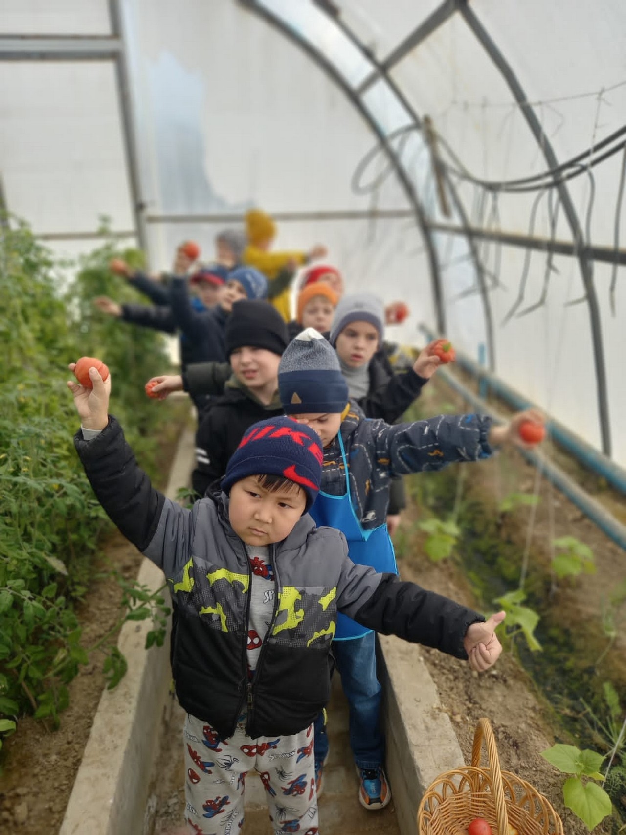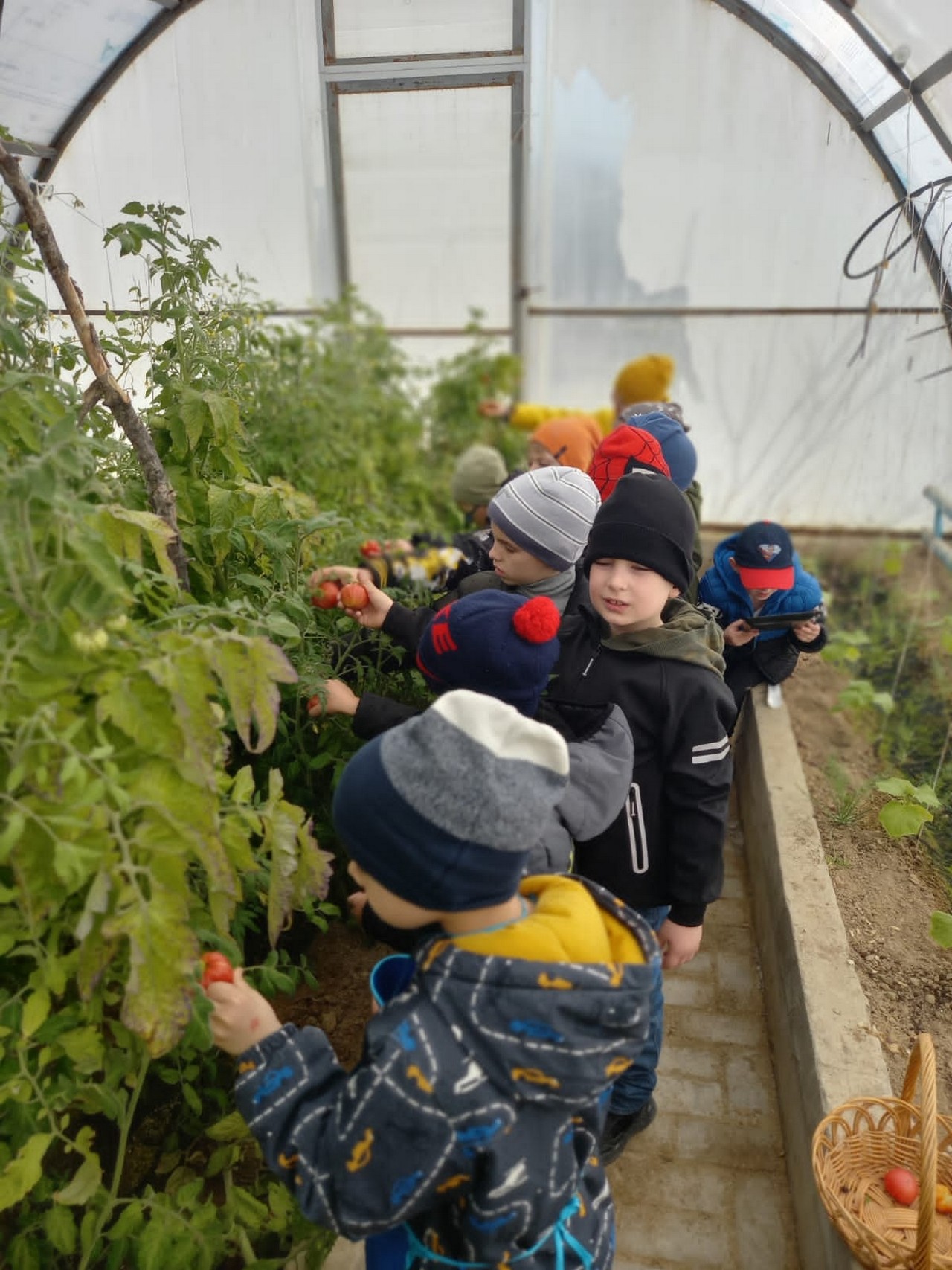 Теплица – прекрасная возможность для проведения опытов и наблюдений. В качестве эксперимента в теплице были посажены сладкие перцы и помидоры. Все лето следили, ухаживали за растениями, а осенью сняли хороший урожай. В этом году решено было сажать огурцы и помидоры, горох, редис, петрушку, укроп добавили для эксперимента.
