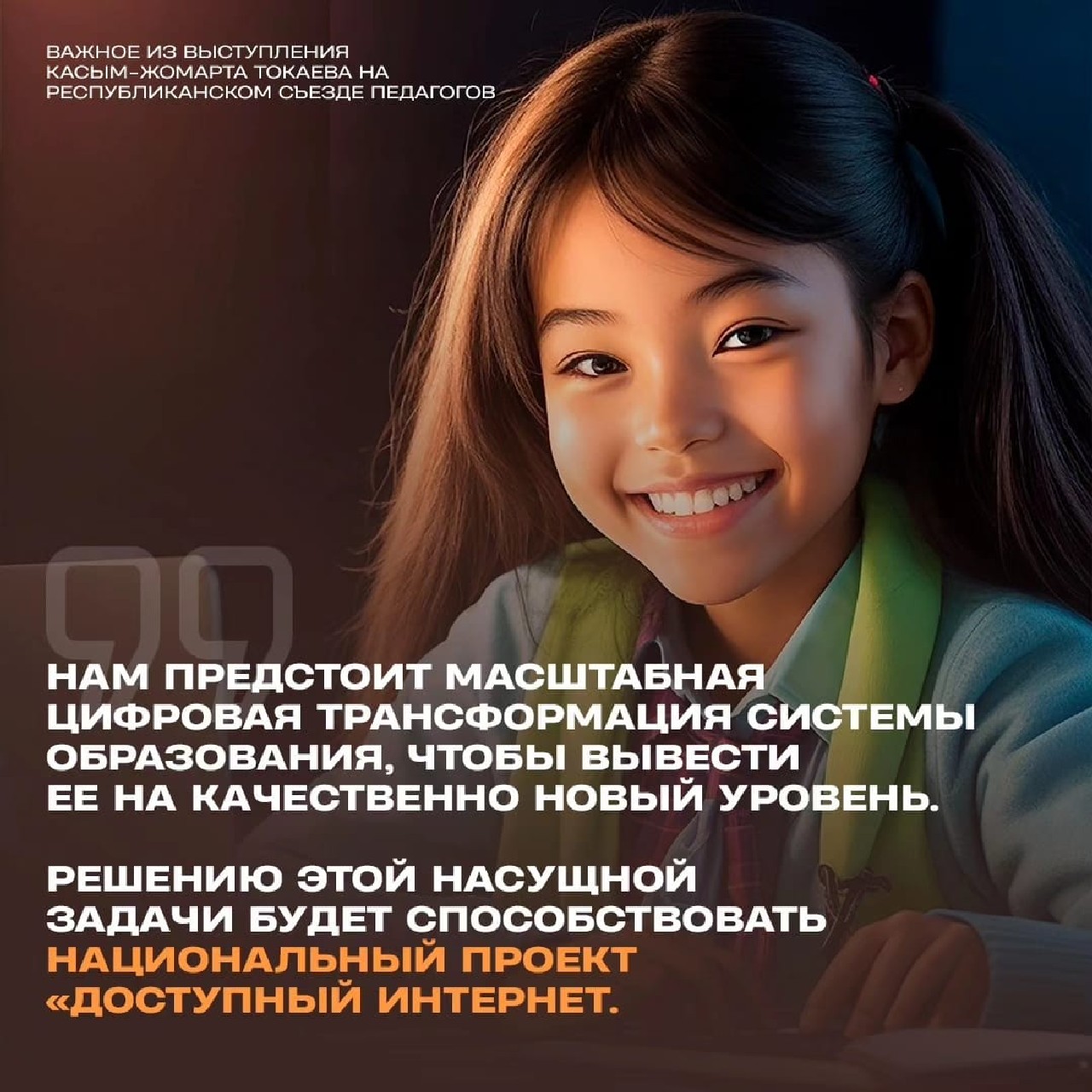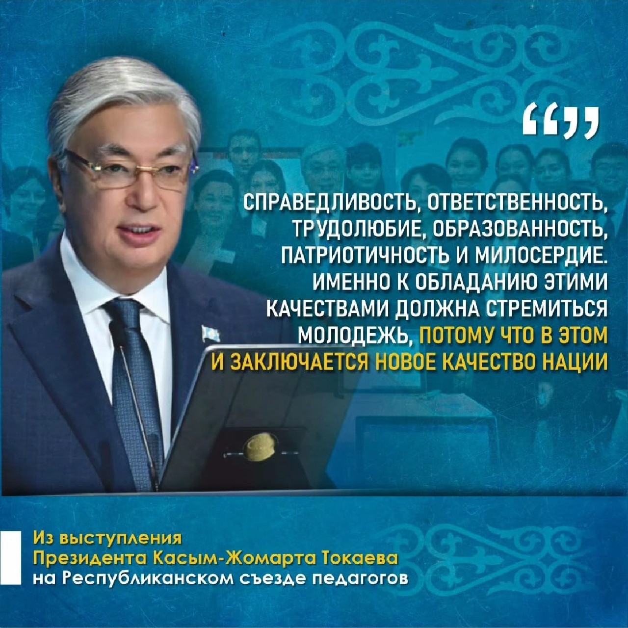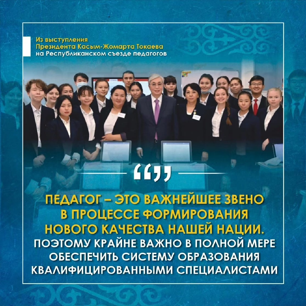 Наша важнейшая задача – воспитание и обучение по передовым стандартам подрастающего поколения", – отметил президент Касым Жомарт Токаев